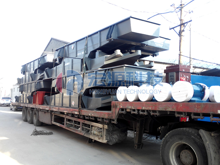 直線振動篩簡稱直線篩,是一種用雙振動電機驅(qū)動的通用型振動篩分設備。裝備的兩臺振動電機做同步、反向旋轉(zhuǎn)時,其偏心塊所產(chǎn)生的激振力在平行于電機軸線方向的合力相互抵消,而在垂直于電機軸方向的合力在偏心塊同向時達到最大,因此該系列振動篩的運動軌跡為一直線。兩電機軸相對篩面有一傾角,在激振力和物料自重力的合力作用下,物料在篩面上被拋起跳躍式向前作直線運動,從而達到對物料進行篩選和分級的目的。 直線振動篩適用于粒度在0.074-5mm,含水量小于7%、無粘性的各種干式粉狀物料的篩分,最大給料粒度一般不大于10mm。 該系列振動篩也可以進行液體的過濾篩分作業(yè),多用于污水處理,亦可以用于較大顆粒的煤粉類物料的篩分,在進行較大物料處理時,篩體厚度需加厚,電機功率需加大,換裝沖孔篩板作為篩網(wǎng)等。詳細情況,請咨詢我公司技術(shù)人員。linear vibrating screen is suitable for the size in 0.074-5 mm, water content is less than 7%, non-viscous all kinds of dry powder material , the largest feed particle size is generally not greater than 10 mm.This series of vibrating screen can also be liquid filtration screening operations, used in sewage treatment, also can be used for larger particles of the pulverized coal class material screening, when making great material processing, the screen body thickness need to thicken, motor power need increase, change punching sieve plate as screen mesh, etc.Details, please consult our company technical personnel.