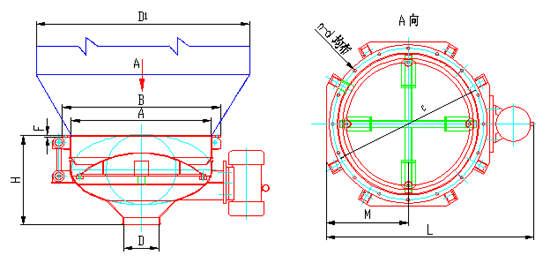序號(hào) | 型號(hào) | 振動(dòng)斗直徑A | 法蘭盤外徑B | 法蘭盤內(nèi)徑C | 出料口直徑Dmin | 電機(jī)相關(guān)尺寸E | 法蘭盤厚度H | 振動(dòng)斗高度H | 長(zhǎng)度L | 寬度M | 法蘭盤螺孔 | 電機(jī)功率(kw) | 一般相配料倉(cāng)直徑D1 | 一般相配料倉(cāng)容積(m3) | 重量(kg) | |