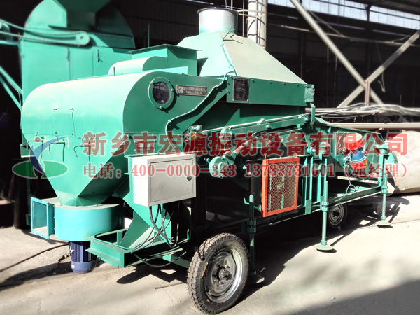 結(jié)構(gòu):本機(jī)由機(jī)架及運(yùn)輸輪,傳動(dòng)部分,主風(fēng)機(jī)、重力分離臺(tái)、吸風(fēng)機(jī)、吸風(fēng)道、篩箱等組成,移動(dòng)靈活,更換篩板方便、性能良好等特點(diǎn)。