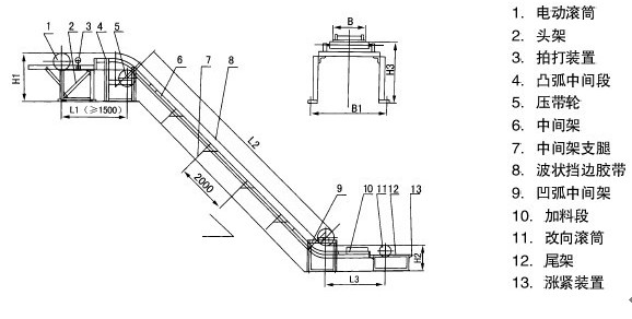 (1), large dip angle belt conveyor for general purpose material continuous conveying equipment, but it has a wavy guard and diaphragm plate conveyor belt.As a result, especially suitable for the large dip angle and vertical 90 °.