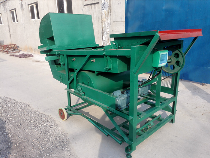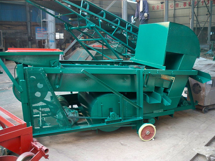 玉米霉變清理機(jī)本機(jī)分為三層篩網(wǎng),可以將物料中的雜質(zhì)通通清理出 去。第一層篩網(wǎng)孔徑比物料大,比物料大的雜質(zhì)都留在了第一層篩網(wǎng)上,隨著篩網(wǎng)的振動從出料口出來,物料緊接著進(jìn)入第二層 篩網(wǎng),第二層篩網(wǎng)孔徑和物料基本相同,比物料小的雜質(zhì)進(jìn)入第三層篩網(wǎng),然后從出料口出來,接著物料進(jìn)入到風(fēng)選過程中,風(fēng) 選過程中比物料輕的雜質(zhì)被風(fēng)機(jī)吸出來,然后將物料由拋糧帶進(jìn)行拋出。