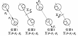 圖 2 不同位置處偏心塊瞬時工作位置示意圖